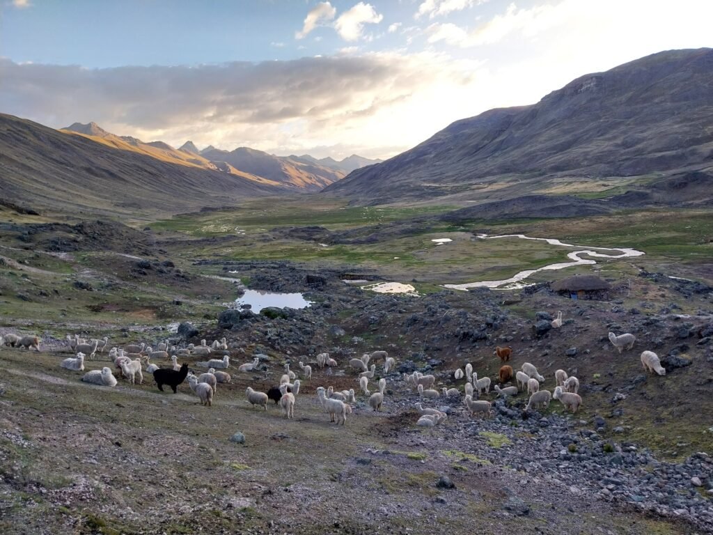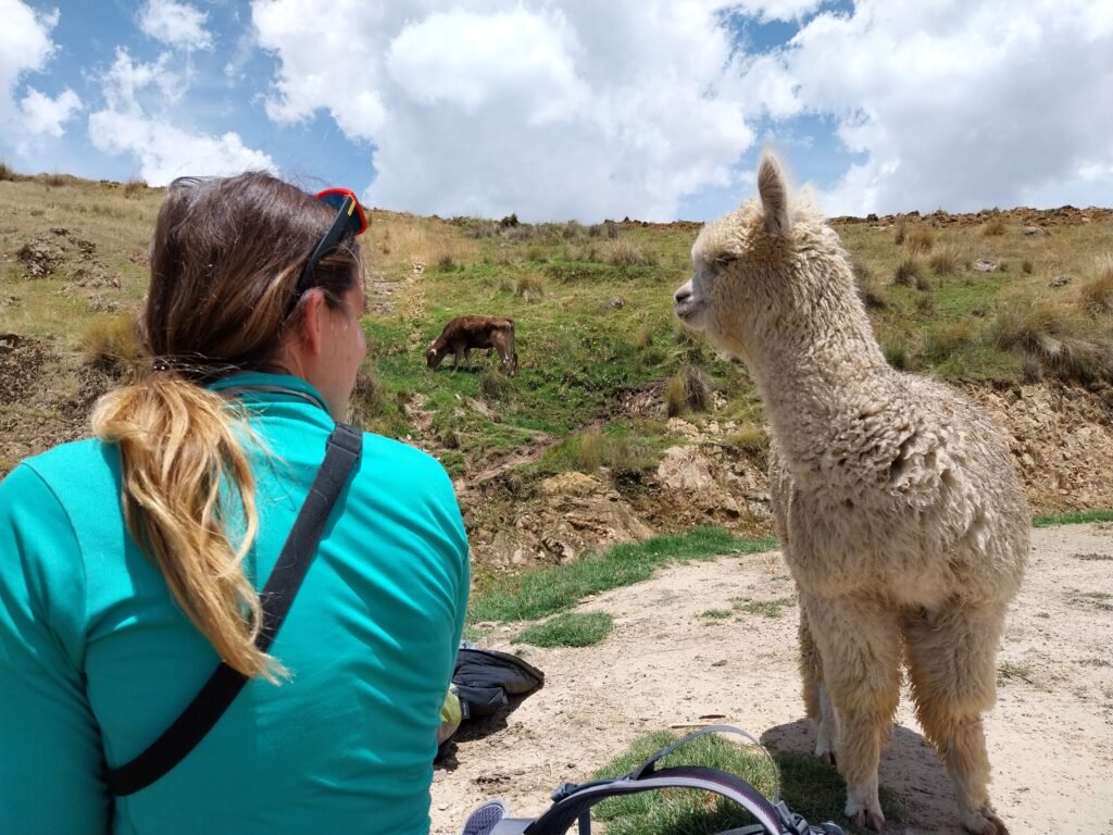 Natěšení na dobrodružství jsme vyrazili brzy ráno. Přešli jsme vesničku a před námi se rozlily pastviny s alpakami, které se nebály se s námi jít pozdravit. Stoupání nás překvapilo hned od začátku, stejně jako nadmořská výška. Po několika hodinách funění do kopce s bolestí hlavy a pocitem, že jsme zrovna vykouřili krabičku cigaret, jsme si slíbili, že příště aklimatizaci rozhodně nepodceníme.