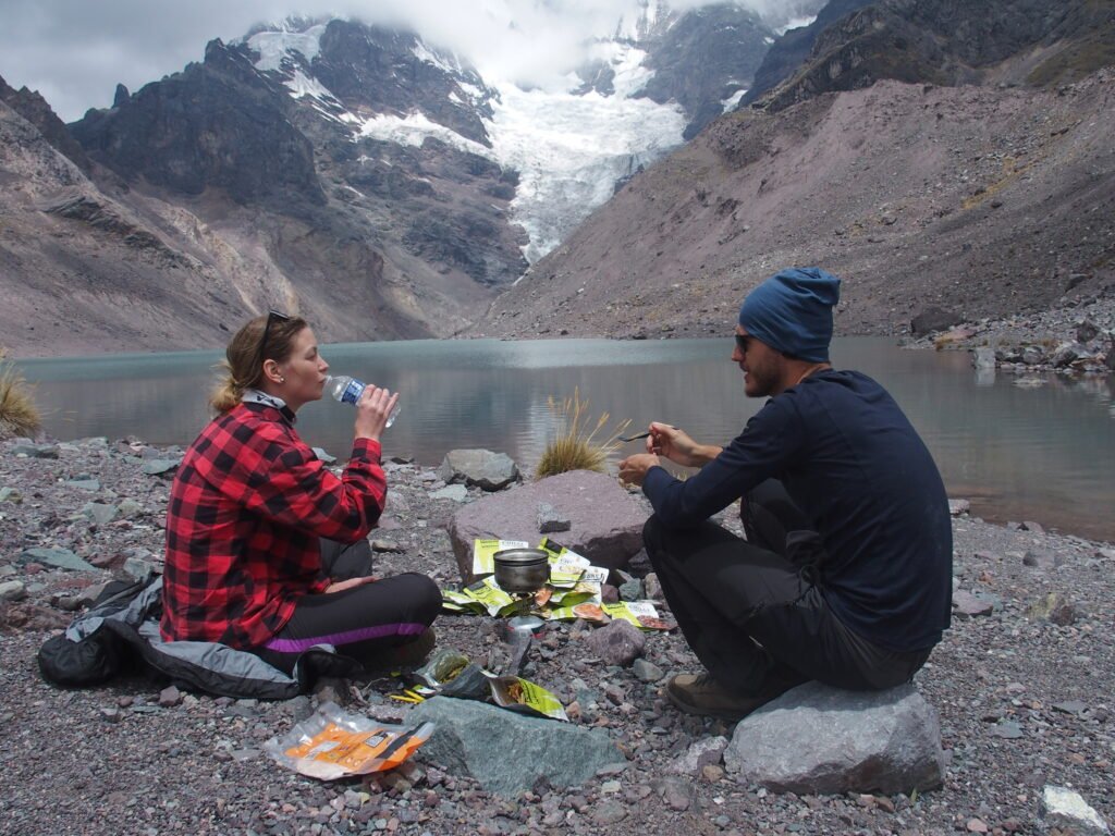 Na jídlo jsme ale během pěti dní narazili jenom první a poslední den. Proto se hodilo nést si zásoby na celý trek a něco navíc, kdybychom se náhodou ztratili nebo zpozdili. Místo i váhu v batohu nám ušetřila dehydrovaná jídla. Vzhledem k tomu, že nám v té výšce nebylo moc dobře, jsme většinou jedli jedno jídlo do dvojice a i to jsme do sebe museli soukat. Určitě je ale fajn tuhle část nepodcenit a neodbýt se jen tyčinkou. Trek vyžaduje hodně energie.V Cuzcu jsme taky koupili plynovou kartuši, díky které jsme mohli připravit teplé jídlo.