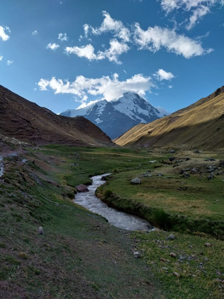 Na většině míst jsme nevěřili, jak krásnou krajinou procházíme. Ledovce a průzračné ledovcové řeky. Hory vysoké tak, že musíte zaklonit hlavu. Alpaky zvedající hlavu, když procházíte, jako by chtěly pozdravit. Teplé prameny, ve kterých jsme se první a poslední den vykoupali. A hlavně žádné davy lidí. Za celou dobu jsme potkali asi tři skupinky turistů (z toho jedni byli Češi a jedni Poláci). Byli jsme prakticky sami. Jen my, a alpaky a vrchol Ausangate, který nás celou cestu provázel. Zkouška přátelství jak se patří.